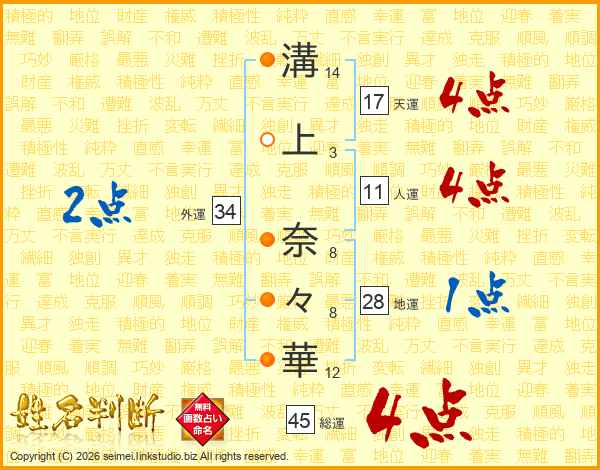 溝上奈々華さんの総運は45画の4点!