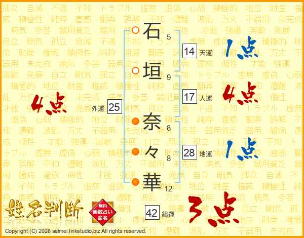 石垣奈々華さんの総運は42画の3点!