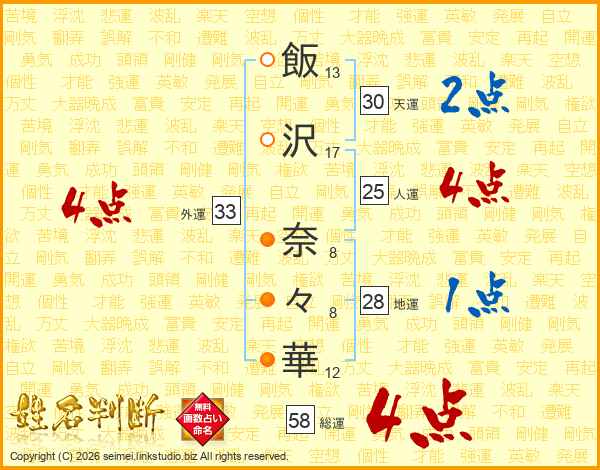 飯沢奈々華さんの総運は58画の4点!