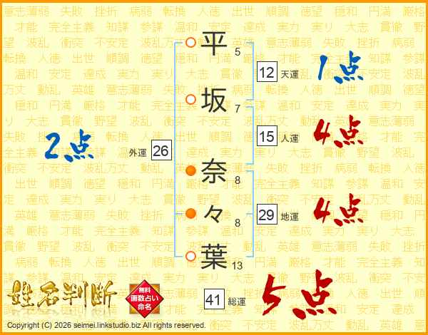 平坂奈々葉さんの総運は41画の5点!