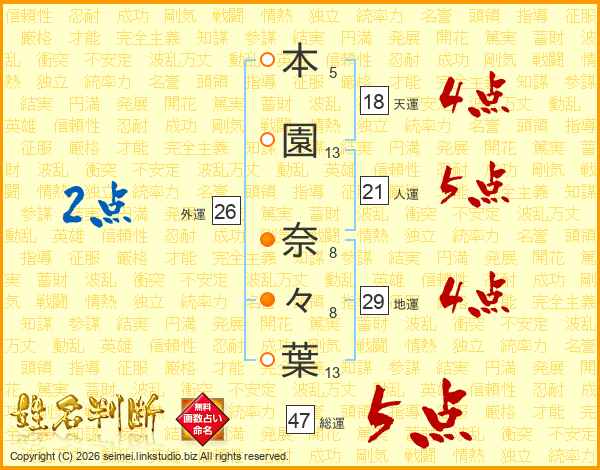 本園奈々葉さんの総運は47画の5点!