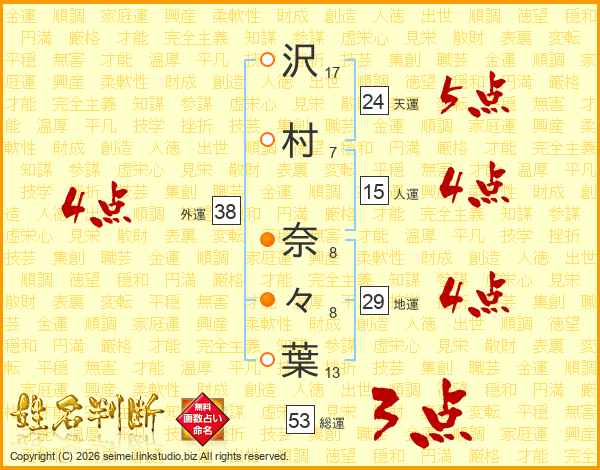 沢村奈々葉さんの総運は53画の3点!