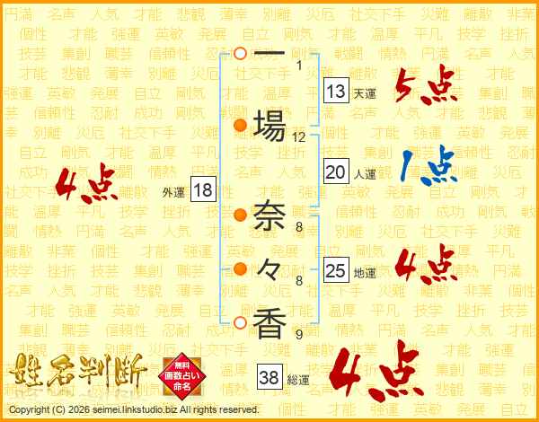 一場奈々香さんの総運は38画の4点!