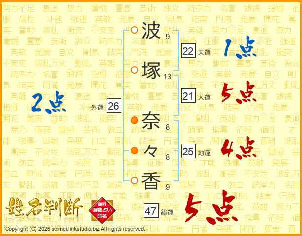 波塚奈々香さんの総運は47画の5点!