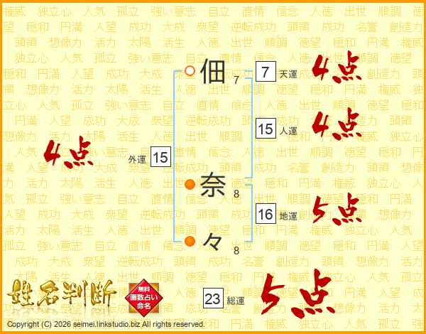 佃奈々さんの外運は15画の4点!