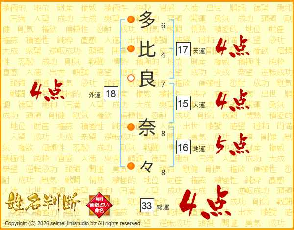 多比良奈々さんの外運は18画の4点!