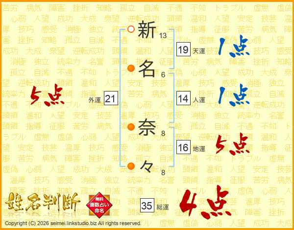 新名奈々さんの人運は14画の1点