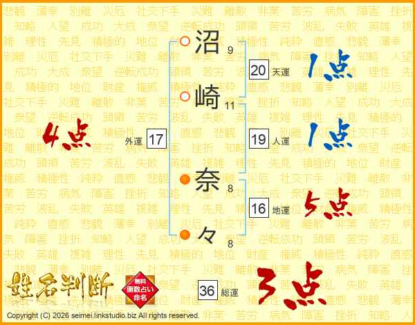 沼崎奈々さんの外運は17画の4点!