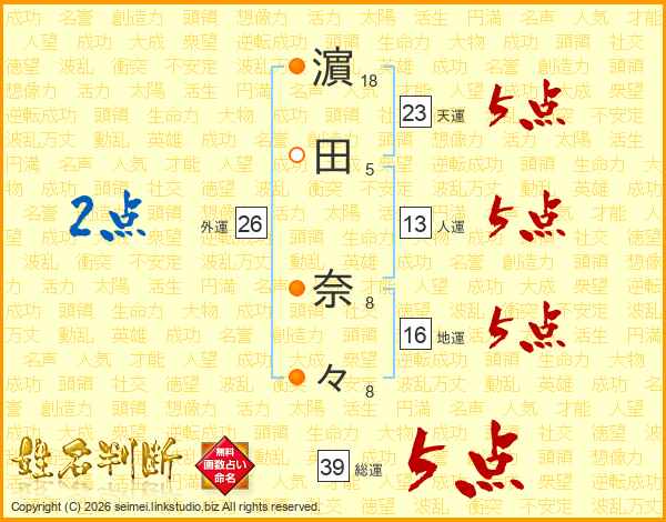 濵田奈々さんの総運は39画の5点!