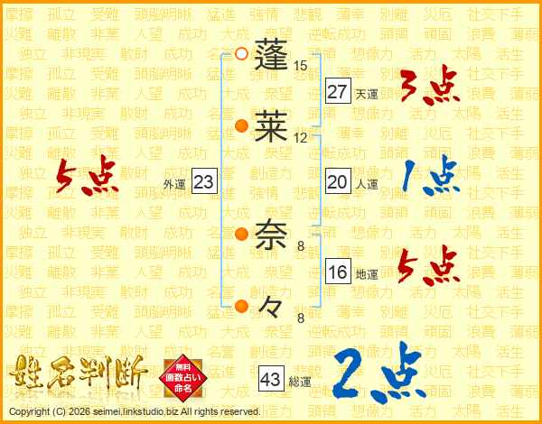 蓬莱奈々さんの外運は23画の5点!