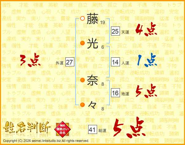 藤光奈々さんの総運は41画の5点!