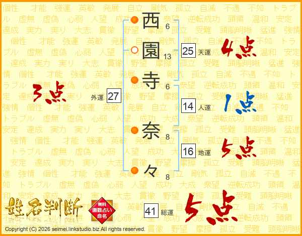 西園寺奈々さんの総運は41画の5点!