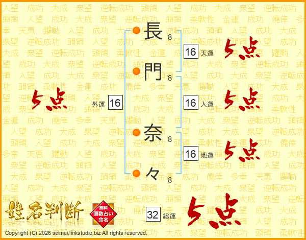 長門奈々さんの総運は32画の5点!