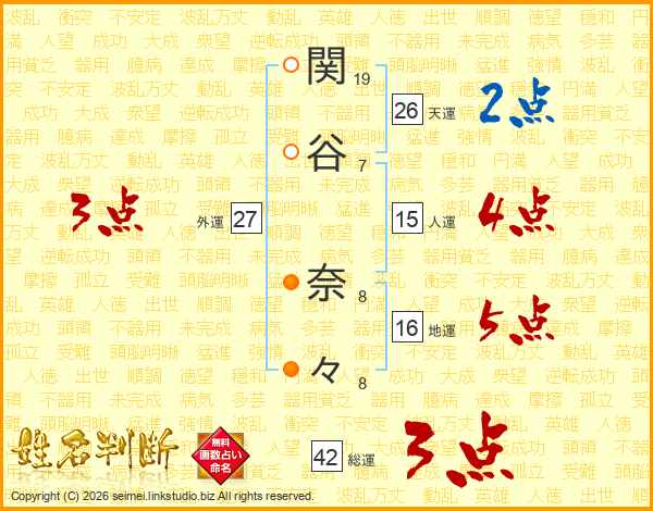 関谷奈々さんの天運は26画の2点!