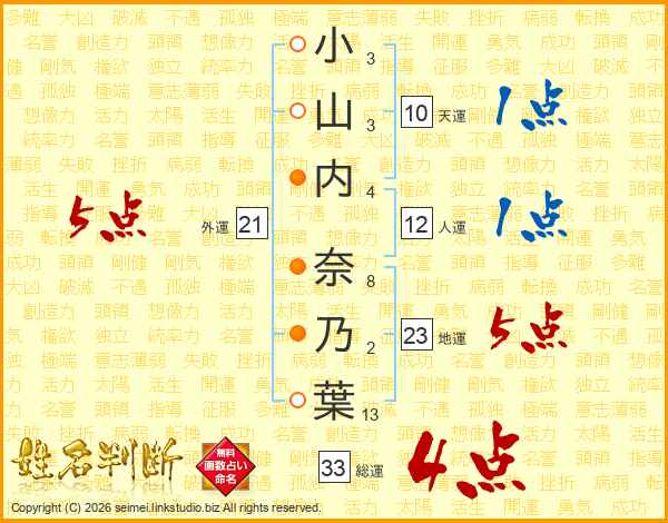 小山内奈乃葉さんの総運は33画の4点!