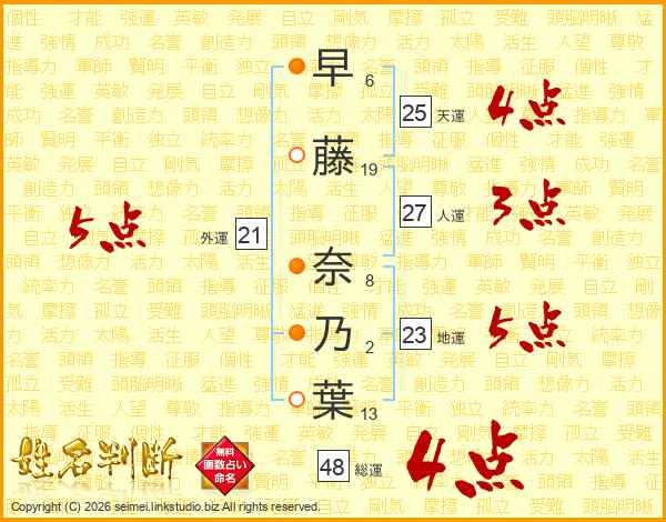 早藤奈乃葉さんの総運は48画の4点!