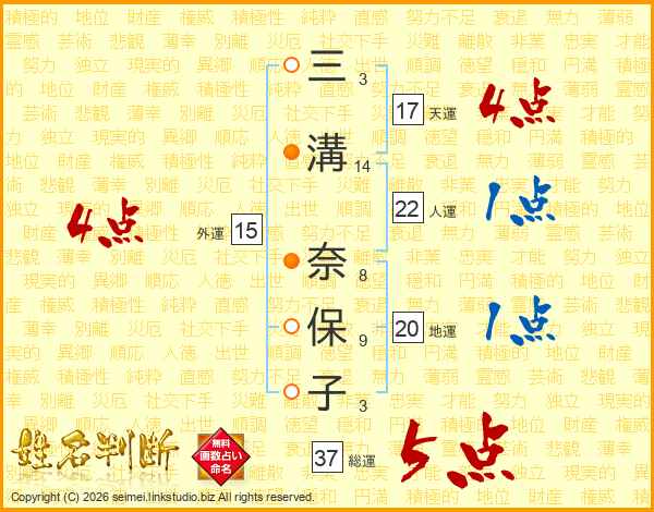 三溝奈保子さんの総運は37画の5点!