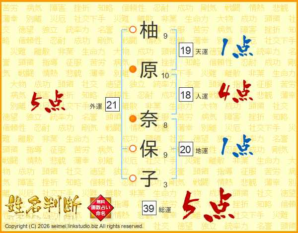 柚原奈保子さんの総運は39画の5点!