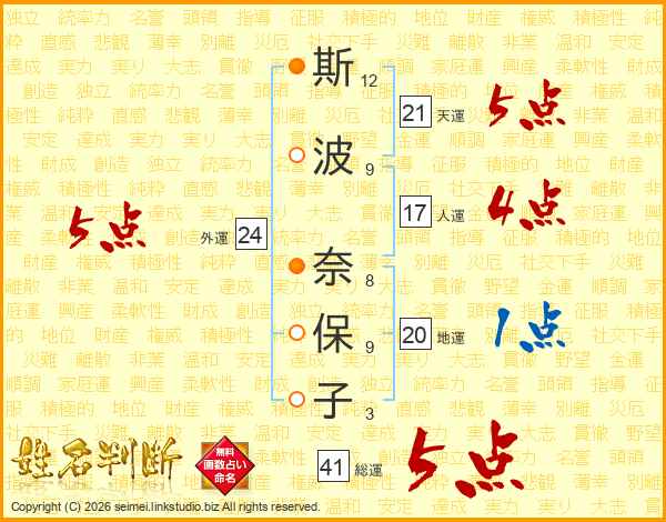 斯波奈保子さんの総運は41画の5点!