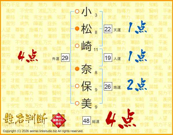 小松崎奈保美さんの総運は48画の4点!