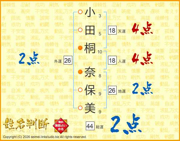 小田桐奈保美さんの地運は26画の2点!