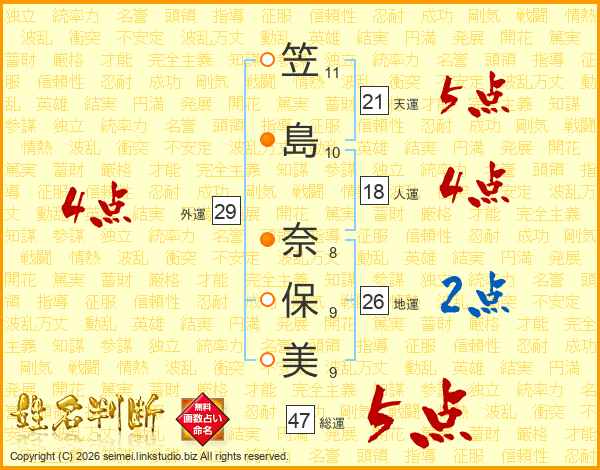 笠島奈保美さんの総運は47画の5点!