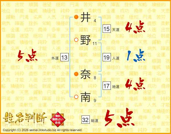 井野奈南さんの外運は13画の5点!