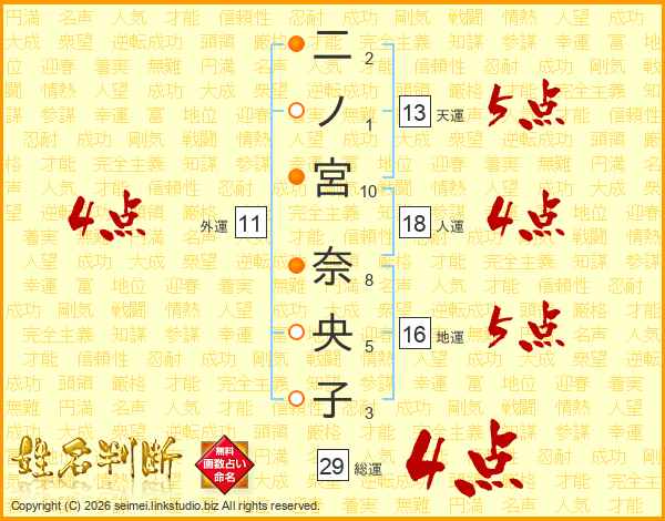 二ノ宮奈央子さんの総運は29画の4点!