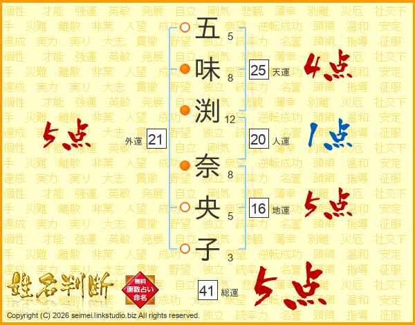 五味渕奈央子さんの総運は41画の5点!