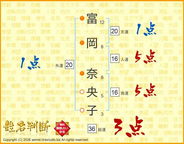 富岡奈央子さんの総運は36画の3点!
