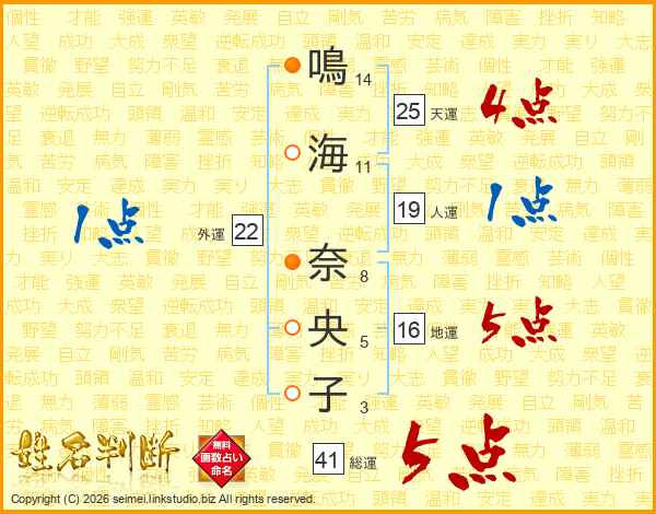 鳴海奈央子さんの総運は41画の5点!