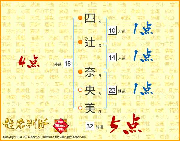 四辻奈央美さんの総運は32画の5点!
