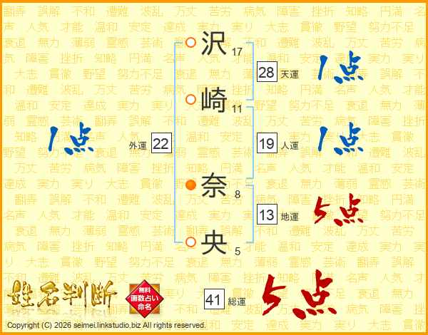 沢崎奈央さんの総運は41画の5点!
