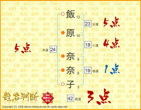 飯(13画)原(10画) 奈(8画)奈(8画)子(3画)