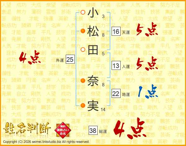 小(3画)松(8画)田(5画) 奈(8画)実(14画)