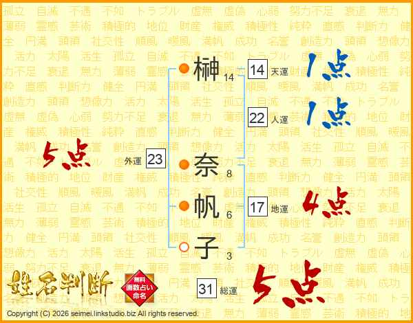 榊奈帆子さんの総運は31画の5点!