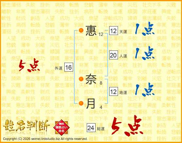 惠奈月さんの総運は24画の5点!