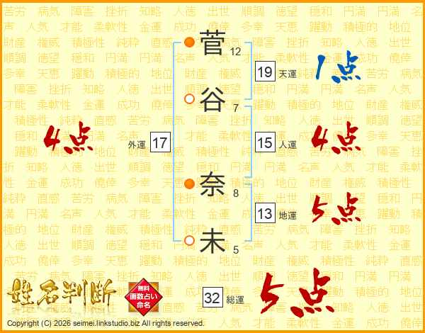 菅谷奈未さんの総運は32画の5点!