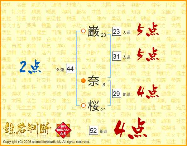 巌奈桜さんの外運は44画の2点!