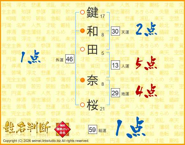 鍵和田奈桜さんの天運は30画の2点!