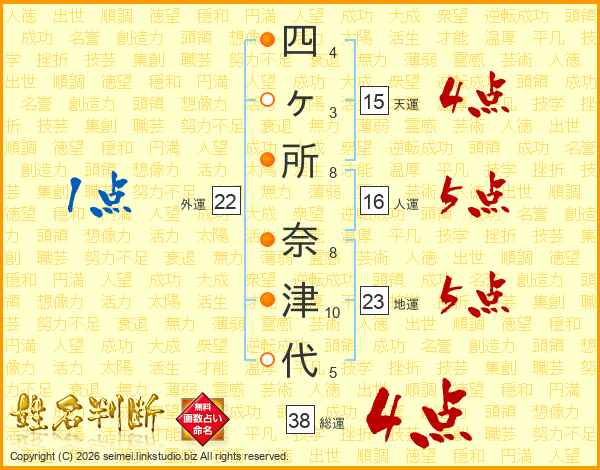 四(4画)ヶ(3画)所(8画) 奈(8画)津(10画)代(5画)