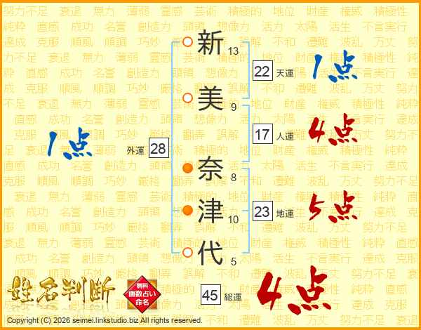 新美奈津代さんの総運は45画の4点!