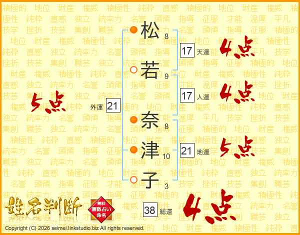 松若奈津子さんの総運は38画の4点!