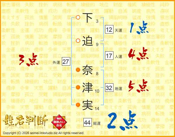 下迫奈津実さんの総運は44画の2点!