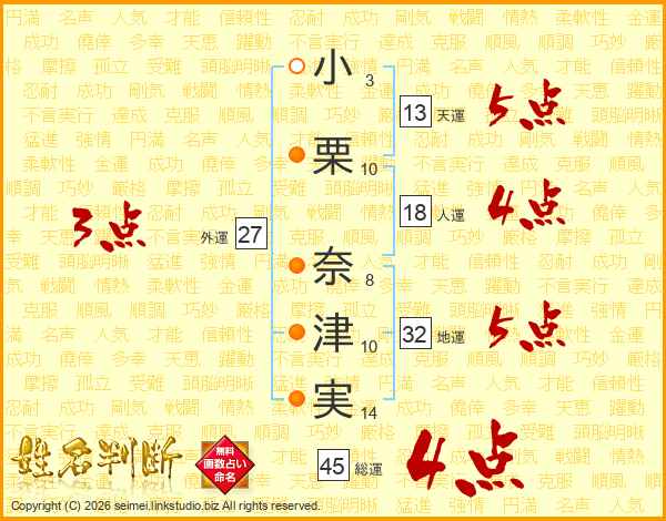 小栗奈津実さんの総運は45画の4点!