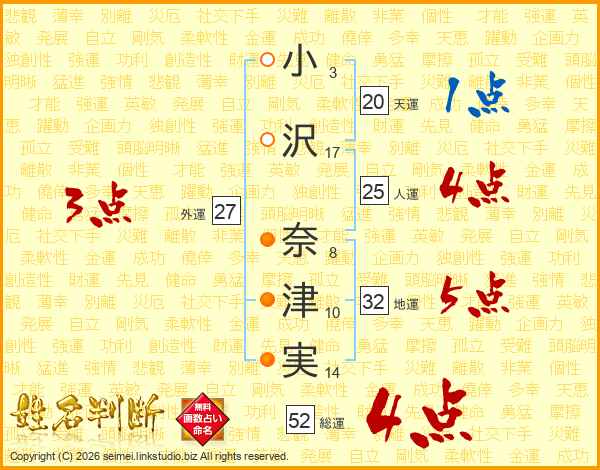 小沢奈津実さんの総運は52画の4点!