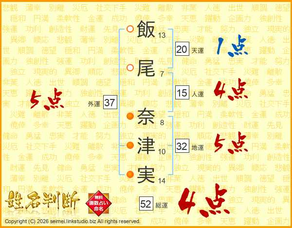 飯尾奈津実さんの総運は52画の4点!