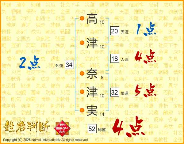 高津奈津実さんの総運は52画の4点!