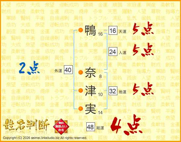 鴨奈津実さんの総運は48画の4点!