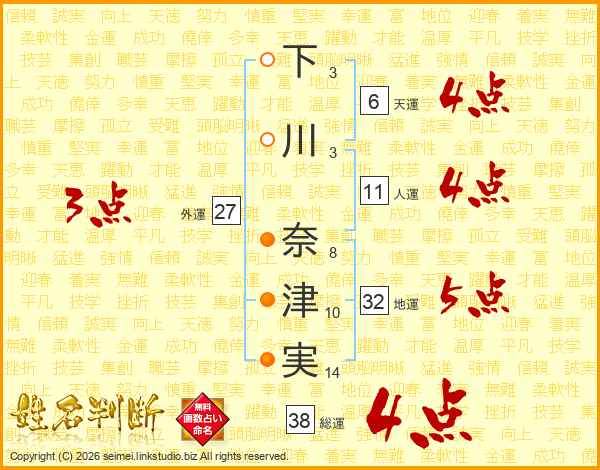 下川奈津実さんの総運は38画の4点!